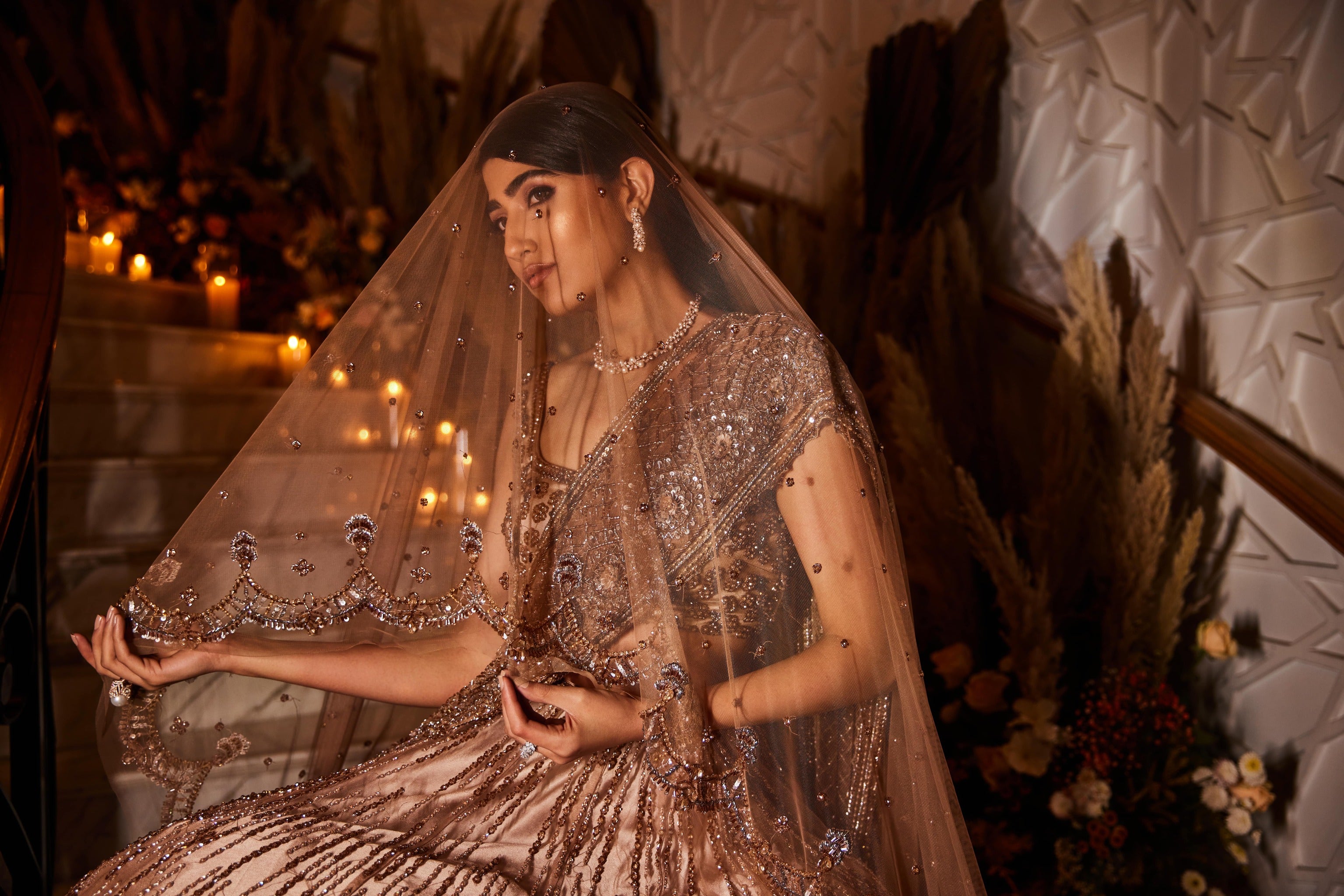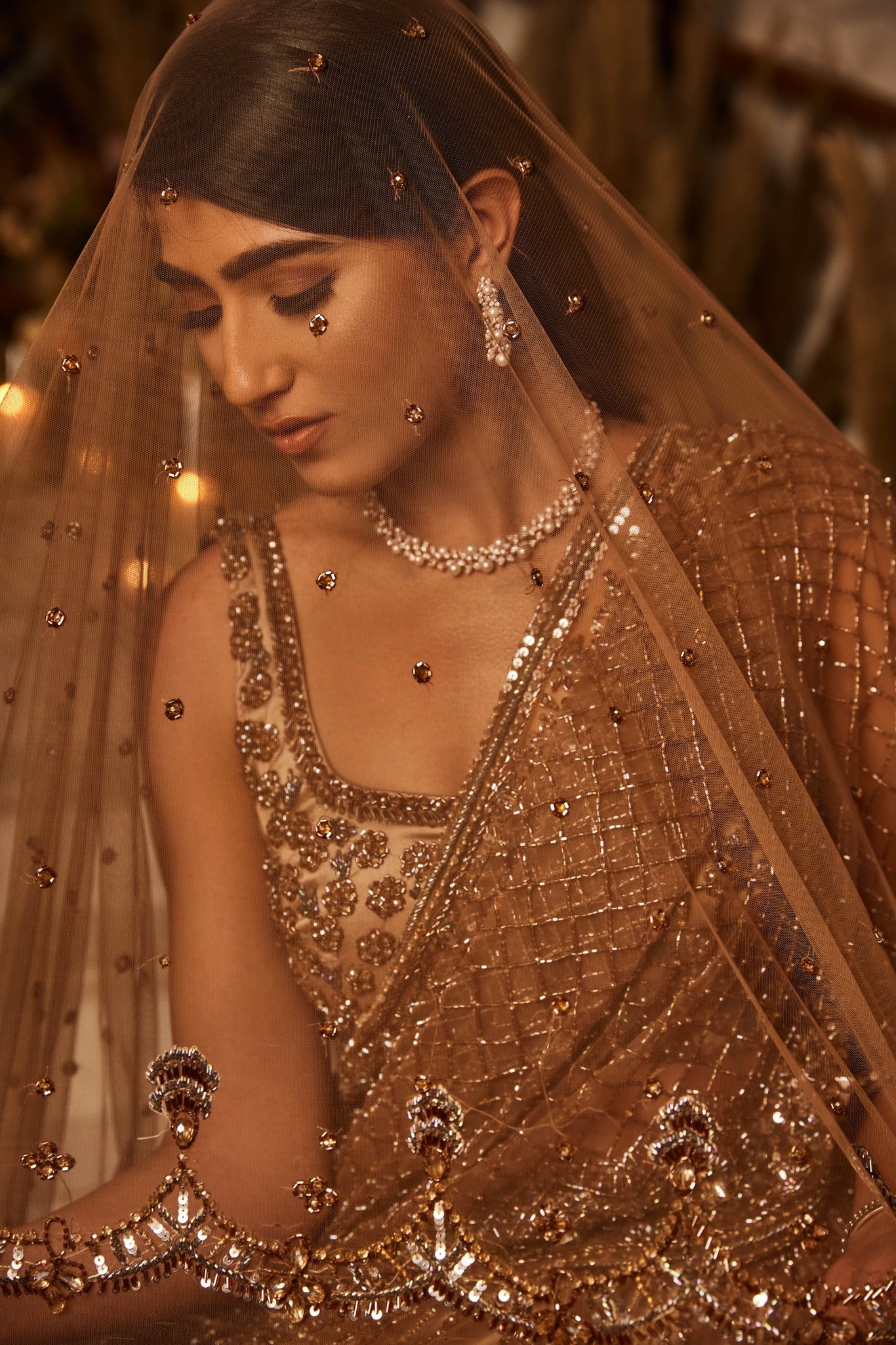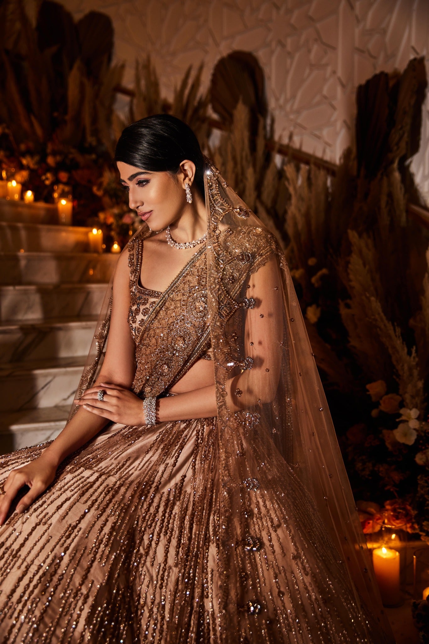 Fully hand embriodered lehenga set done on tulle fabric with crystal, cutdana and sequin work. This lehenga set is paired with a crystal, sequin and cutdana detailed dupattas. It comes with two dupatta set. This elegant set can be opted with single dupatta of your choice.